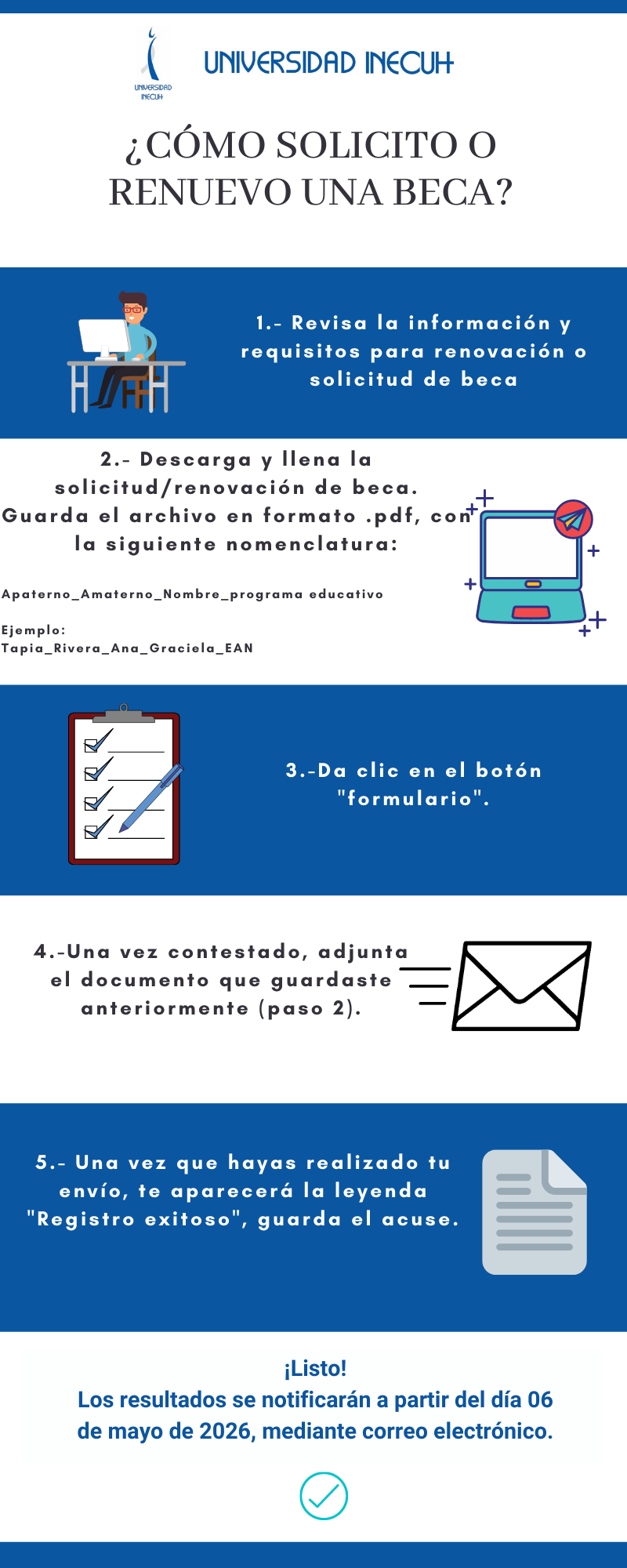 Universidad INECUH, a través de la Coordinación de Posgrado convoca a todos los estudiantes de Maestría y Doctorado a postularse para solicitar o renovar beca, teniendo como fecha de registro del 01 al 15 de abril de 2026, para tramitarla.